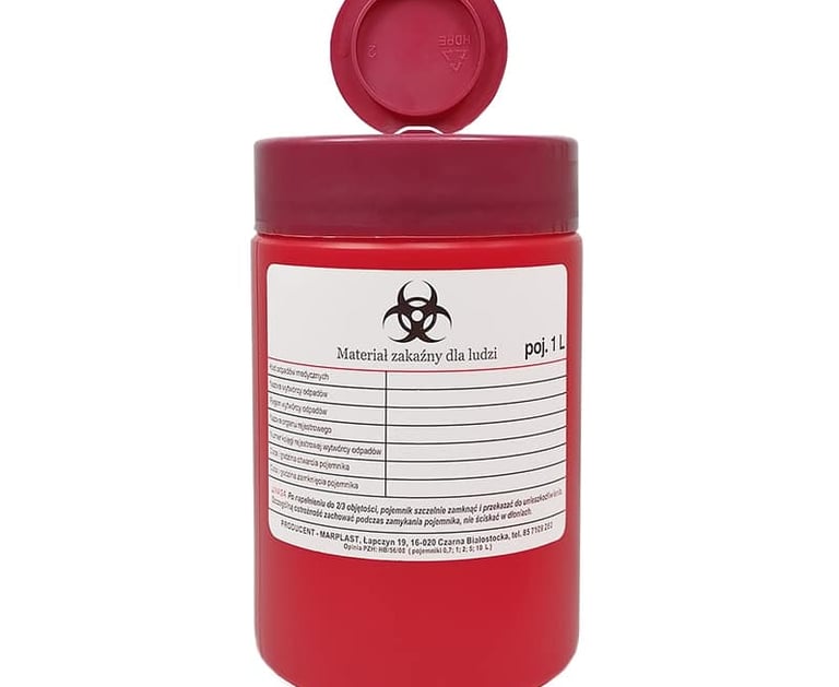 - Igły, szkło oraz ostre narzędzia umieść w specjalnych pojemnikach